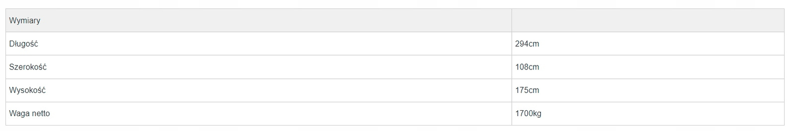 1. Wymiary: 275 x 105 x 145 cm, Waga netto: 1600kg