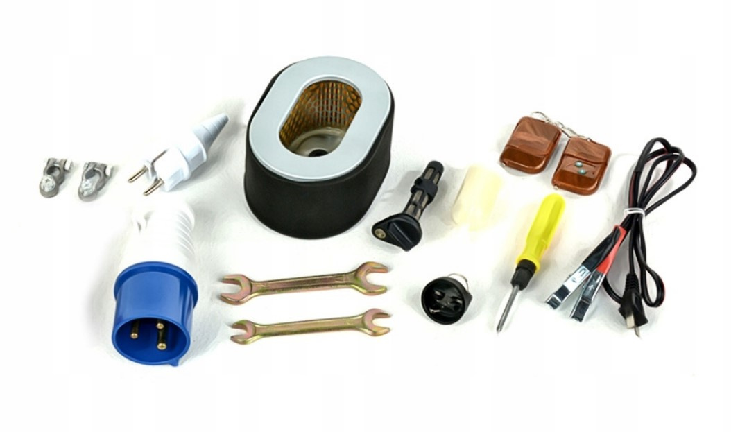 Jak przedstawiono to na początku - by w pełni korzystać z agregatu Proton 3 Oasis Klient nie musi wyposażać się w żadne dodatkowe części, jednakże by cieszyć się produktem przez długi czas, należy patrzeć w przyszłość - filtry to elementy, które się zużywają. W zestawie z agregatem otrzymasz dodatkowy filtr powietrza, oleju oraz paliwa i wiele innych. Zobacz poniżej, co jeszcze zawiera zestaw: