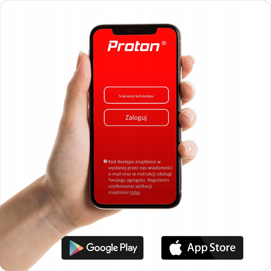 Wraz z agregatem Proton otrzymujesz dostęp do aplikacji która pomoże Ci w obsłudze agregatu. Dzięki aplikacji otrzymasz między innymi: