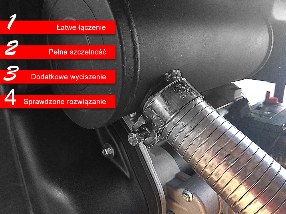 Wąż ten jest fabrycznie nowy, niepoddany żadnym dodatkowym niecertyfikowanym modyfikacjom mogącym prowadzić do zaduszenia silnika lub z czasem do nieszczelności. Wąż ten doskonale nadaje się do wyprowadzania spalin z agregatów prądotwórczych zarówno z silnikami diesel jak i benzynowymi.